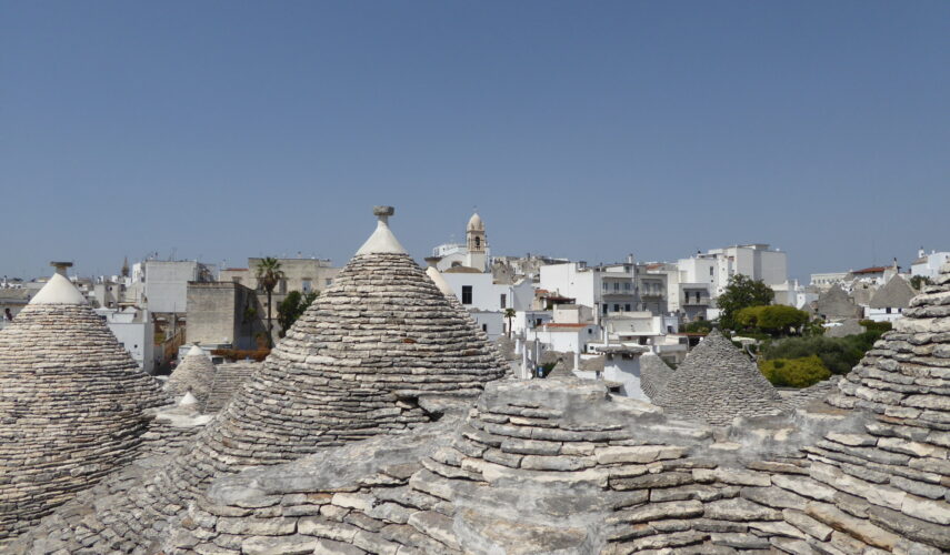 Apulien (ital.Puglia) liegt im Südosten Italiens, mit der Hauptstadt Bari, die eine bekannte Universitätsstadt ist. Die Halbinsel Salento bildet den „Absatz“ des „italienischen Stiefels“ hier gilt die Stadt Lecce mit ihren barocken Bauten als das „Florenz des Südens“. Hügeldörfer mit weiß getünchten Häusern, weites Ackerland und Olivenhaine versetzt mit den charakteristischen Trullis (Steinhütten mit kegelförmigen Dächern).